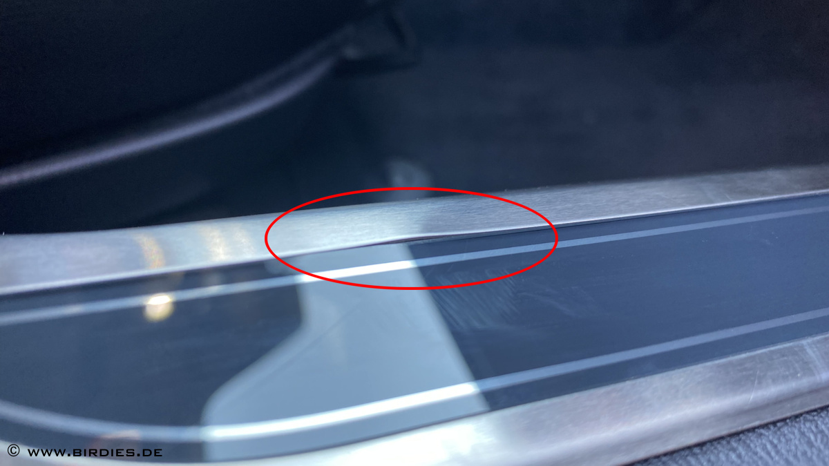 Die Einstiegsleisten wurden reklamiert und mit dem Mechaniker vor Ort besprochen. Seine Aussage: "Kann sein, dass die beim demontieren verbiegen, dann müssen wir neue bestellen." - Ja klar, soweit noch alles "ok"... gerade so.