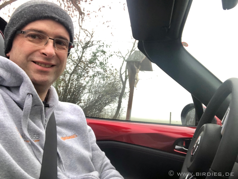 Die Abholung bei -2° C und Nieselregen, geschah also unter perfekten Bedingungen für einen solchen Sportwagen, begleitet von landkreisweiten Glatteiswarnungen, aber trotzdem kamen wir heile zu Hause an. Die erste kurze Ausfahrt fand dann aber erst am nächsten Tag statt, bei gut 8°C (plus!) und natürlich OFFEN!