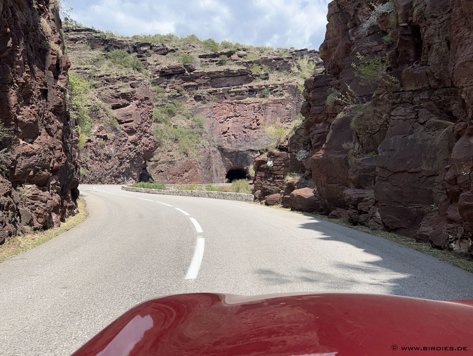 Gorges du Cains mit ihrem roten Gestein und der sehr kurvenreichen