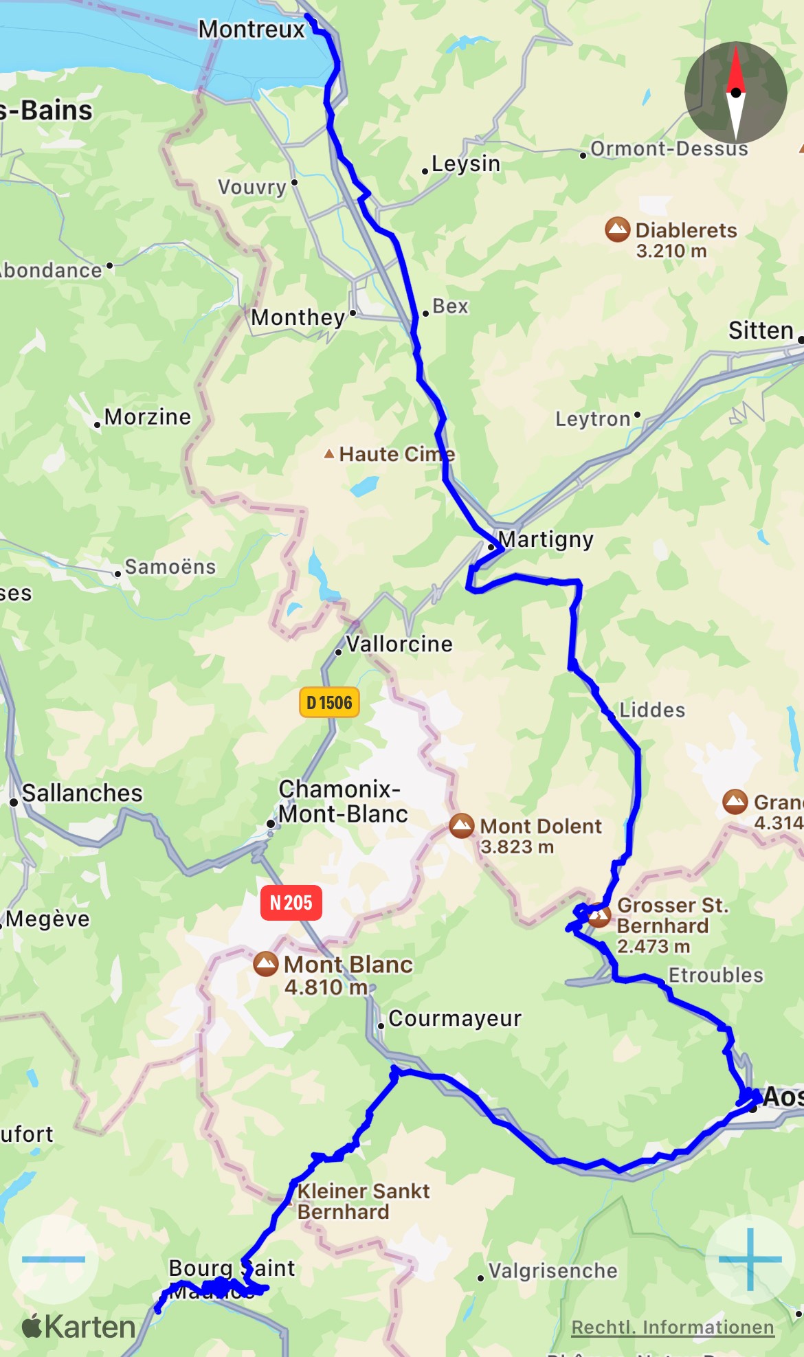 Ohne erneute Fahrzeugwäsche ging es also jetzt in Richtung Heimat. Dazu sollten wieder die beiden San Bernardinopässe bewältigt werden, jetzt natürlich erst der Kleine, dann der Große.