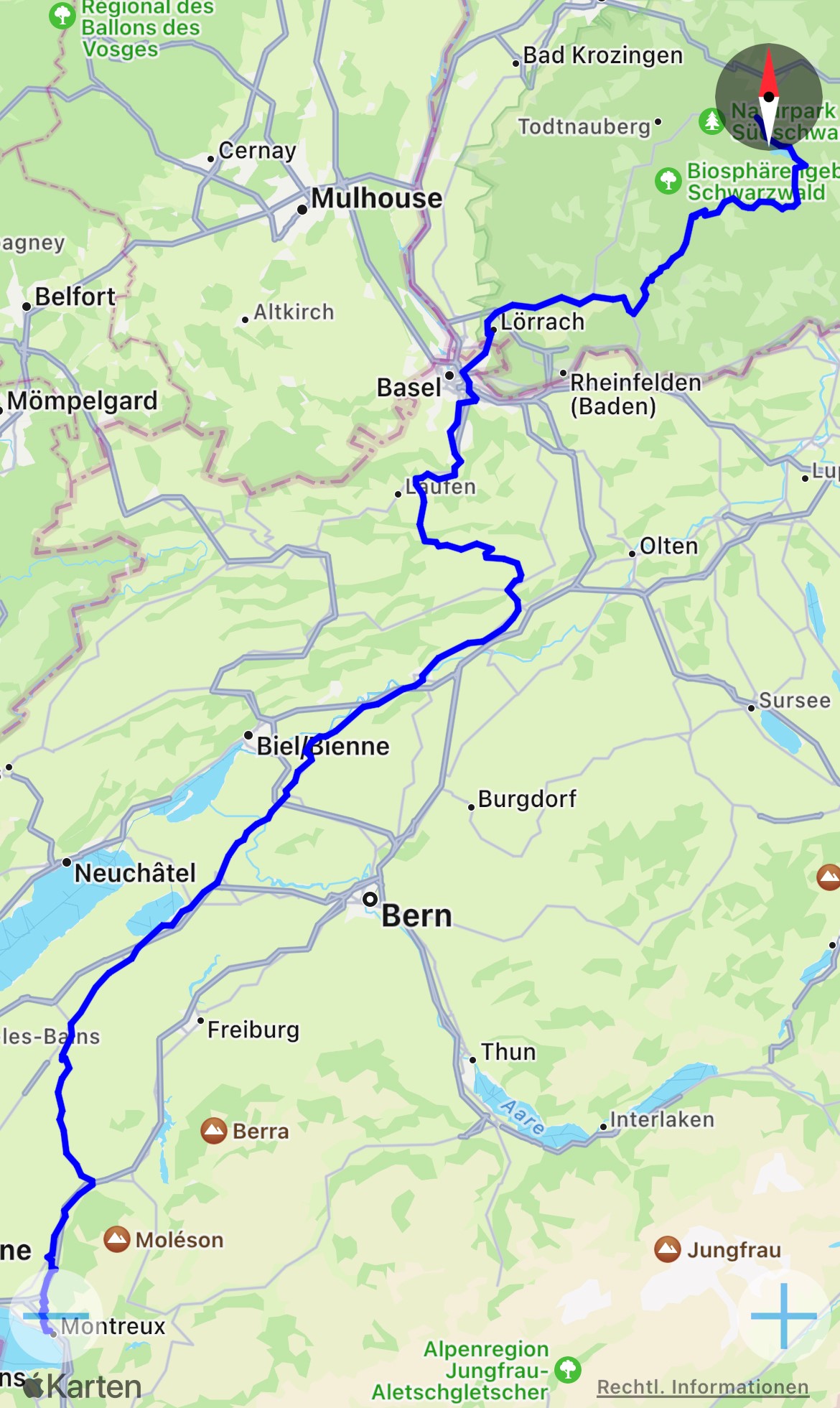 Als dann ging es auf Landstraßen durch die Schweiz bis nach Basel.