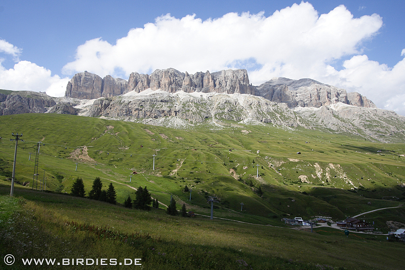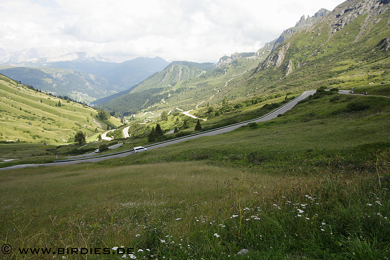 Die üblichen, großen Pässe sind wir mit dem Motorrad schon oft gefahren, diesmla sollte es daher eine andere Kombination werden. Das war auch eine gute Idee, wie sich schon bei der Anfahrt zeigte: Das Verkehrsaufkommen auf diesen bekannten Strassen ist inzwischen EXTREM. Nach dem Carerpass die letzten Kilometer vor Canazei standen wir sehr viel im Stau...