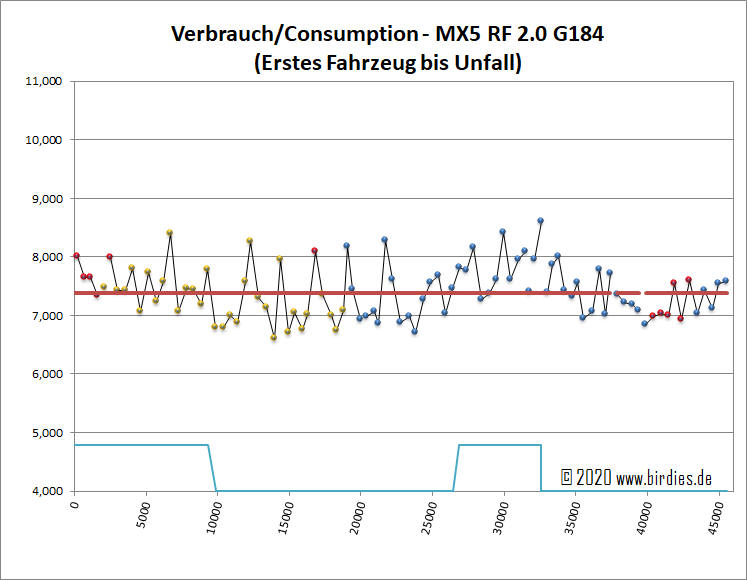 — Durchschnittsverbrauch über die gesamte Laufzeit