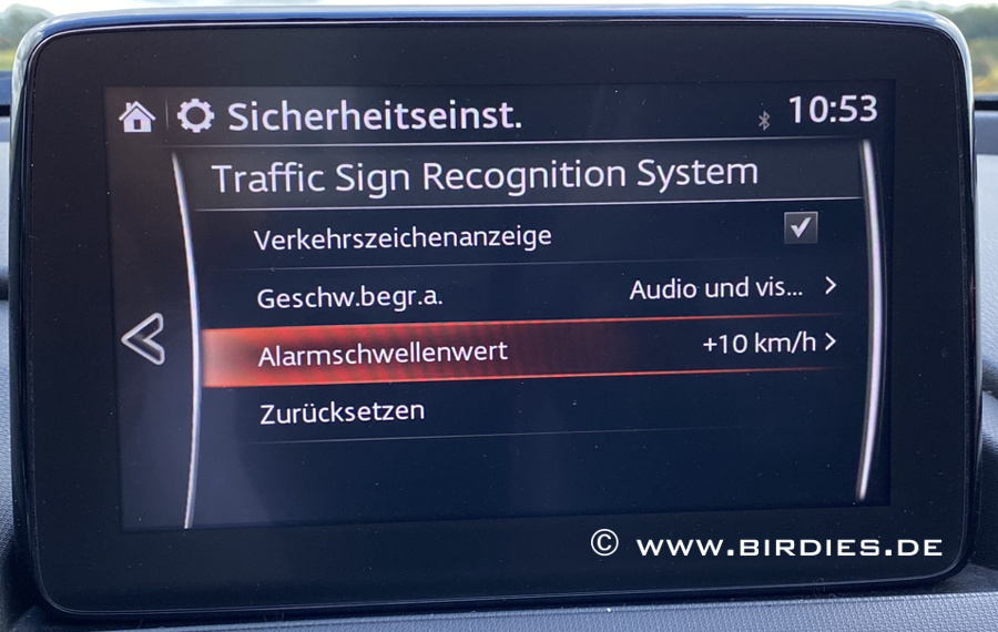 Jetzt sollte im Bordcomputer unter SICHERHEIT die Option "Traffic Sign Recognition System" erscheinen.