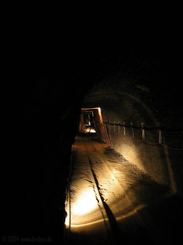 denen man in Gruppen von 2-4 Personen in tiefere Bereiche des Bergwerks