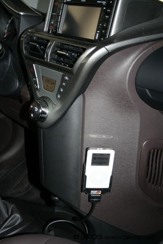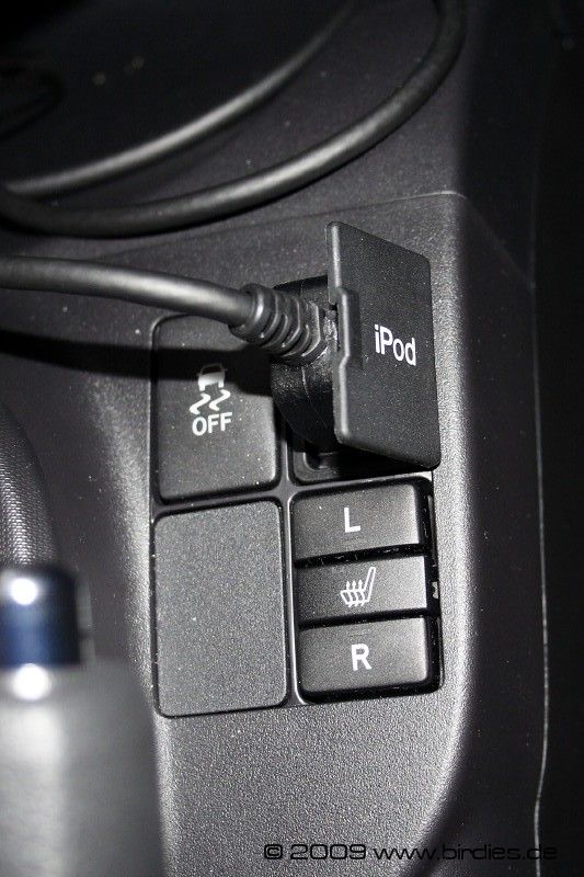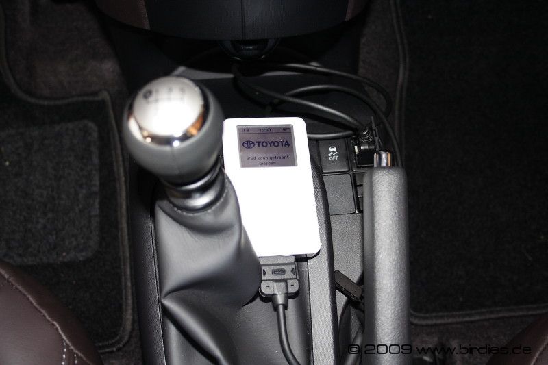 Leider hat Toyota das Thema aber nicht ganz zu Ende gedacht, es gibt keine Halterung für den iPod, und da Ablageflächen leider Mangelware sind, werde ich mir da wohl noch was basteln müssen.
